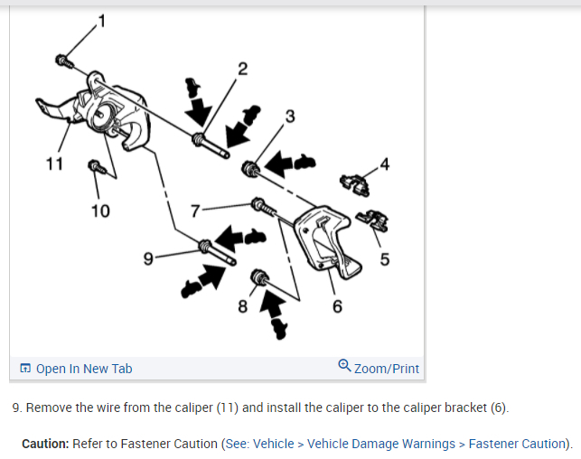 Remove the wire from the caliper (11) and install the caliper to the caliper bracket (6).
