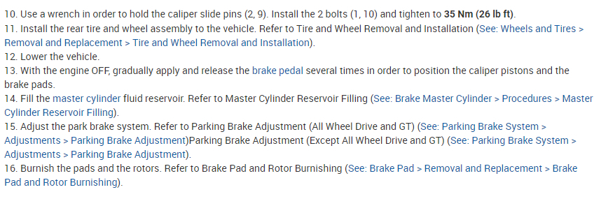 Adjust the park brake system. Refer to Parking Brake Adjustment (All Wheel Drive and GT) (See: Parking Brake SystemAdjustments)Parking Brake Adjustment (Except All Wheel Drive and GT) (See: Parking Brake SystemAdjustments).