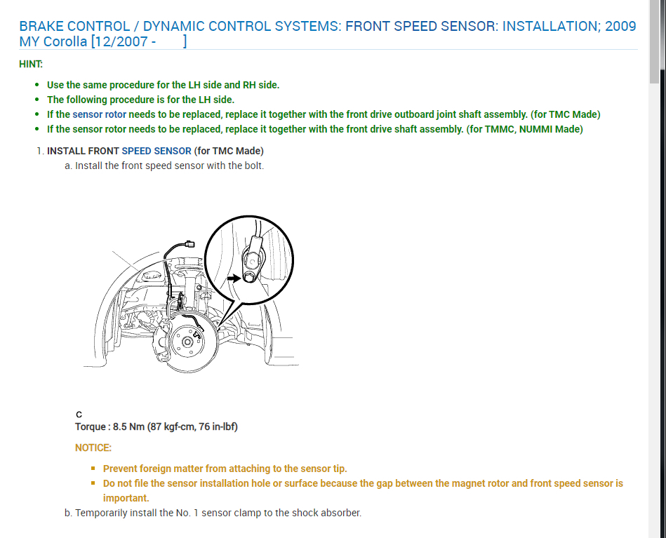 Related ABS Wheel Speed Sensor Replace/Remove Content