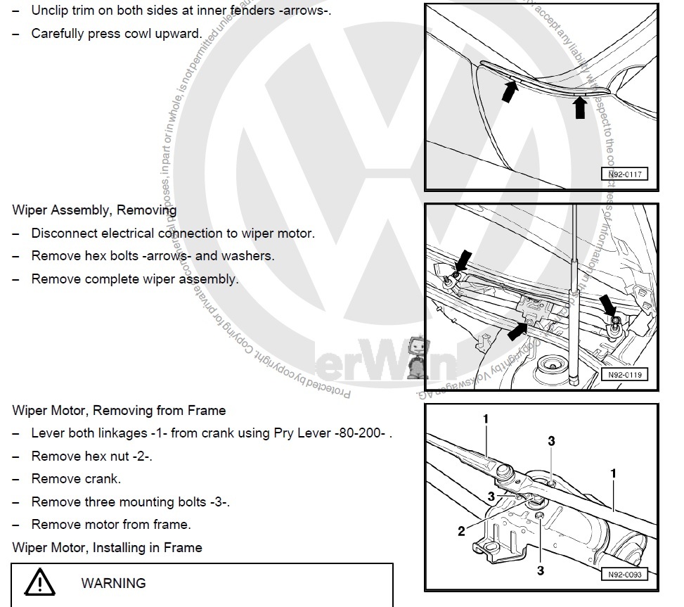 I have a 2009 volkswagen golf and I had just finished cleaning the snow off my car. I hopped in and turned on the wiper blades and saw there was still snow and ice on them. Stupid me grabbed the windshield wiper while the motor was still running and it stopped moving. Now the motor runs but the wipers dont move. They are not stuck in one position, I can move them freely with a bit of tension on them. How do I fix that?