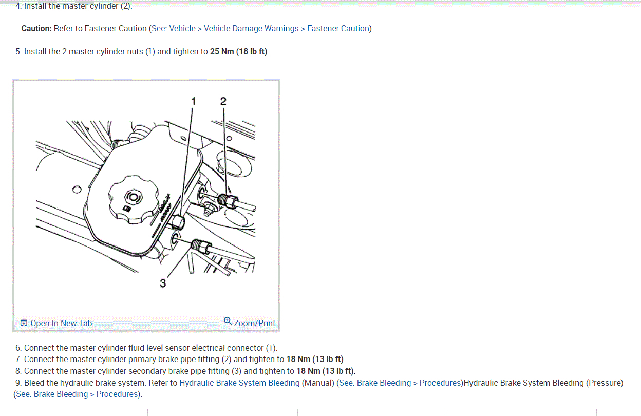 10. After completing the final master cylinder port bleeding procedure, ensure that both of the brake pipe-to-master cylinder fittings are properly tightened.
