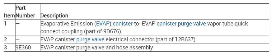 Disconnect the EVAP canister purge valve vapor tube quick connect coupling from the valve. For additional information, refer to Section 310-00.