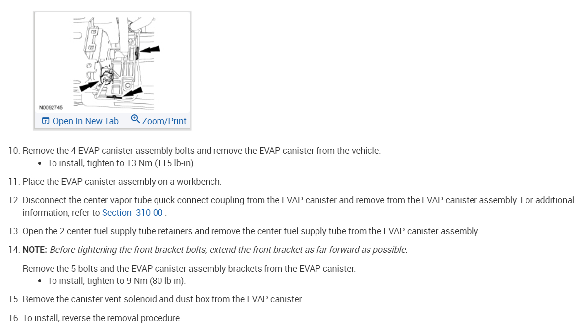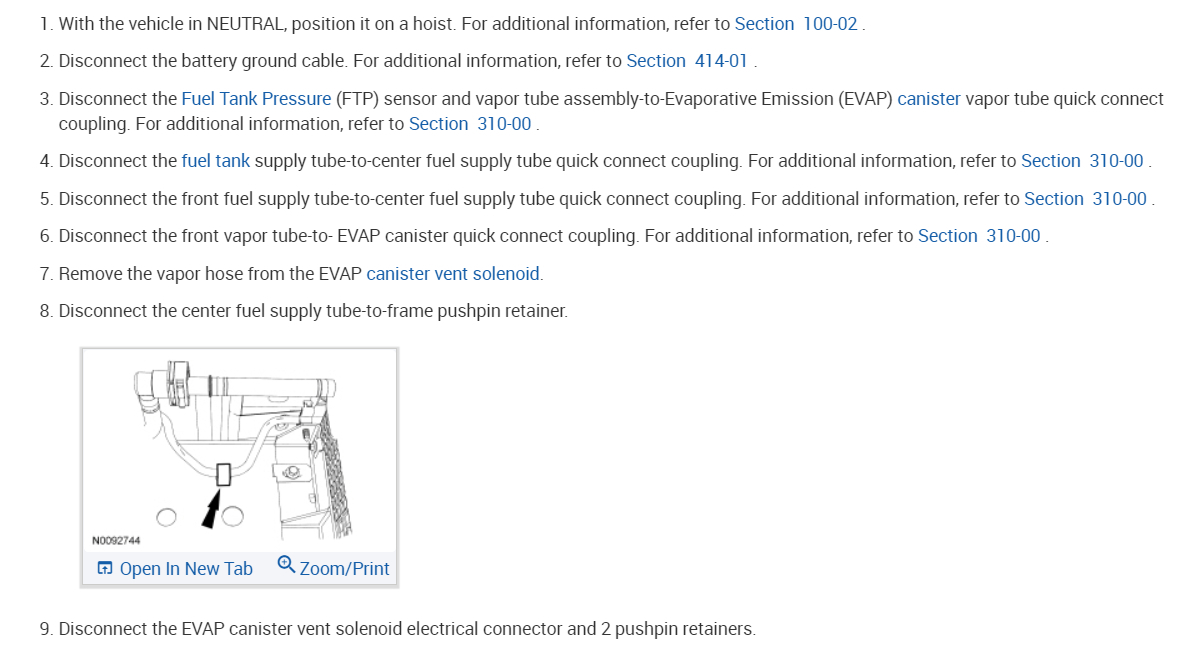image WARNING: Always disconnect the battery ground cable at the battery when working on an evaporative emission (EVAP) system or fuel-related component. Highly flammable mixtures are always present and may be ignited. Failure to follow these instructions may result in serious personal injury.