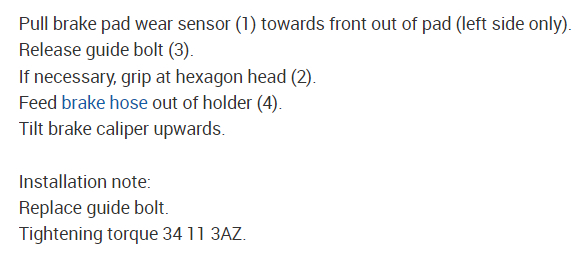 Here is how to change the brake pads and rotors out with torque specs. Check out the images (below). Let us know if you need anything else.