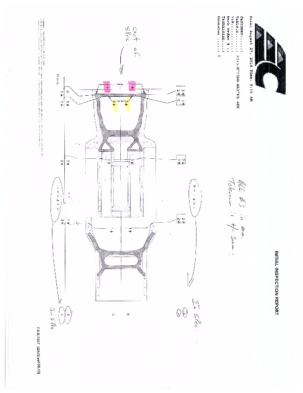 What's important is if the suspension parts are in the right places. If a part of the frame that's bent is ahead of the lower control arms and upper strut mounts, there is nothing to worry about. Even when the suspension is tweaked a little, what's important is if a four-wheel alignment will take care of it. You always want the alignment checked after any hard impact and after any frame damage is repaired. There are three main alignment angles that are checked and / or adjusted on every alignment. Those are camber, caster, and toe. I can interpret those numbers from the printout.