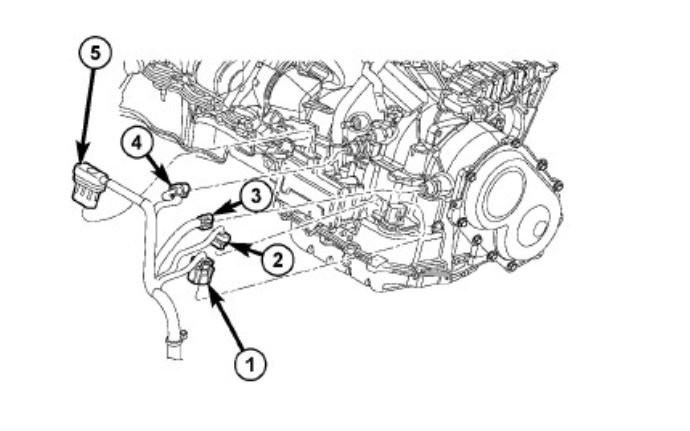 NOTE: Before preforming the hydraulic pressure tests be certain to disconnect the Variable Line Pressure (VLP) electrical connector (2) at the transmission. Check for and clear any codes that may have been set after preforming any hydraulic pressure tests and connecting the Variable Line Pressure (VLP) electrical connector.