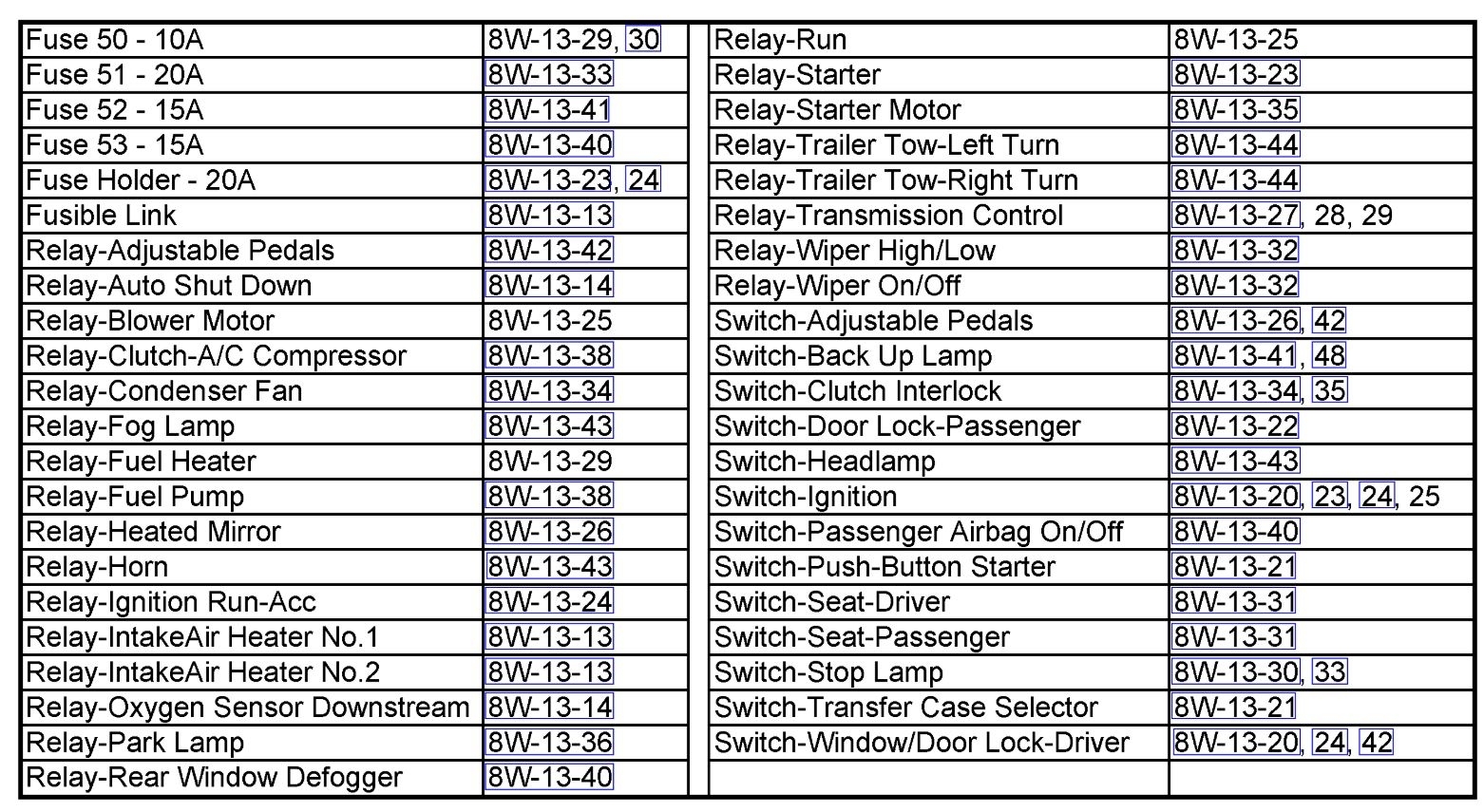 The online manuals where we copy these diagrams from are indexed by systems, then, for each system, there can be over a dozen diagrams plus variations for different engine sizes and optional equipment. Many of these diagrams are broken up to cover four to eight pages. The reason I asked what kind of problems you were trying to solve is so I could search for the appropriate diagrams. I do not have enough time left in my life to post hundreds of diagrams. You would be better off buying a subscription for just your truck, for one year. As I recall, that costs around $28.00, which is far less than the cost of a manual through the dealership. You can copy the diagrams and save them on your computer for use in the future. Be warned though, you need to copy one diagram at a time, and save it with a program like MS Word and/or MS Paint. I paste them in Word where I can add arrows and call outs, then I copy them to Paint where I can save them in a format that can be uploaded here.