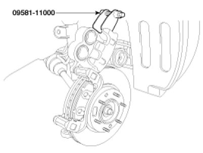 6. If caliper assembly was removed, install the brake hose to the caliper.