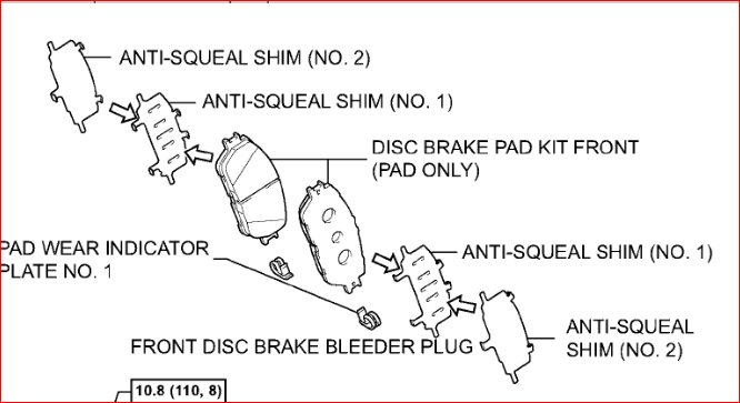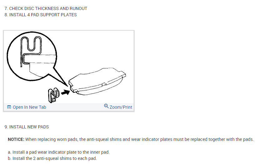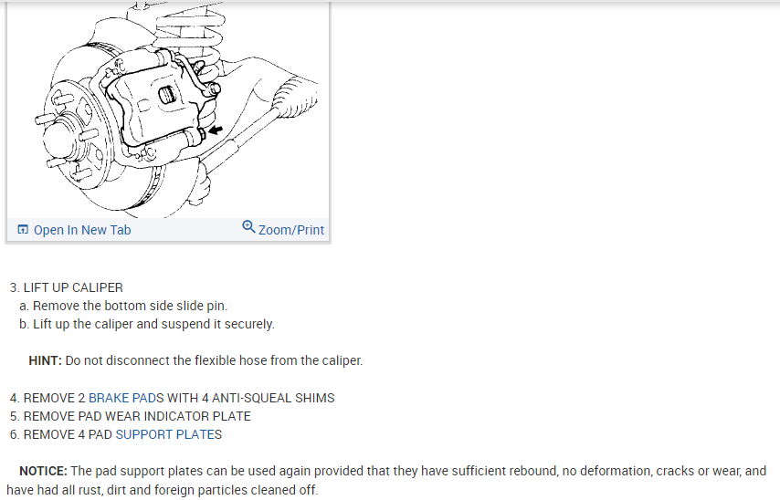NOTICE: The pad support plates can be used again provided that they have sufficient rebound, no deformation, cracks or wear, and have had all rust, dirt and foreign particles cleaned off.