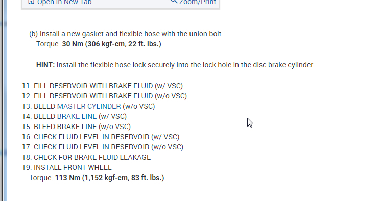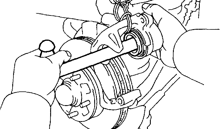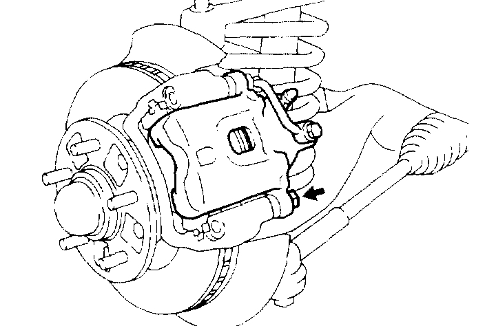 HINT: Do not disconnect the flexible hose from the caliper.