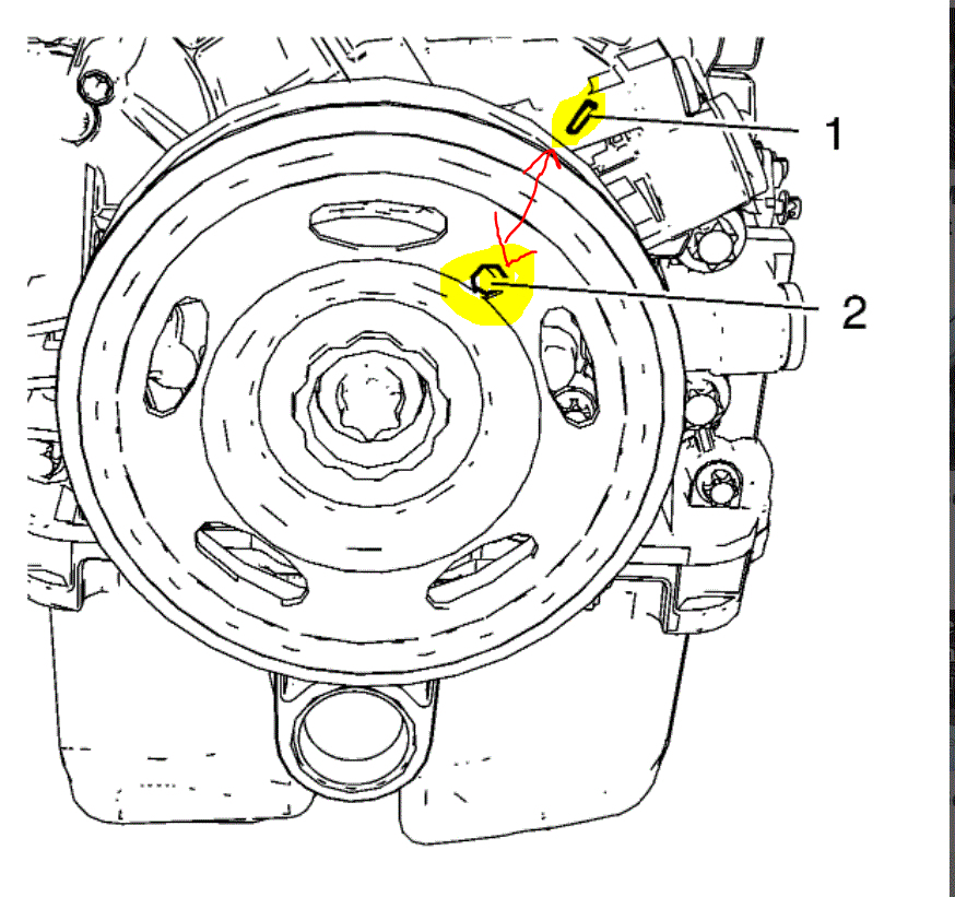 6. Install the drive belt to the crankshaft balancer and remove the fixing pin. Refer to Drive Belt Replacement See: Drive Belt > Removal and Replacement > Drive Belt Replacement.