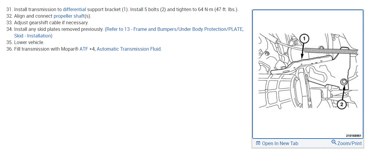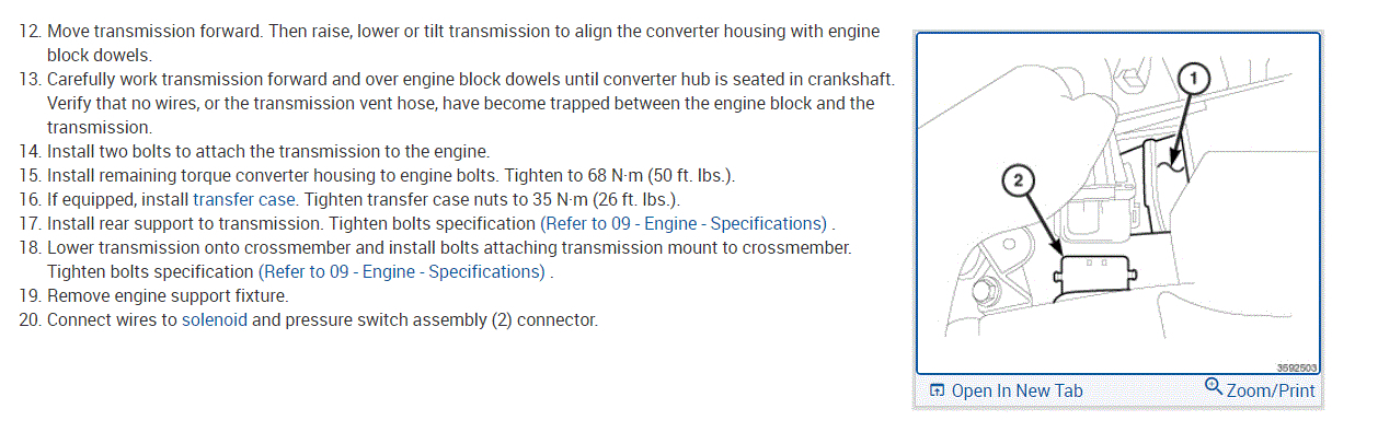 As far as the removal and replacement of the transmission, I attached several pics below. The pics include the directions and pictures specific to your vehicle for removal and replacement. Check out the diagrams (Below). Let us know what happens and please upload pictures or videos of the problem.