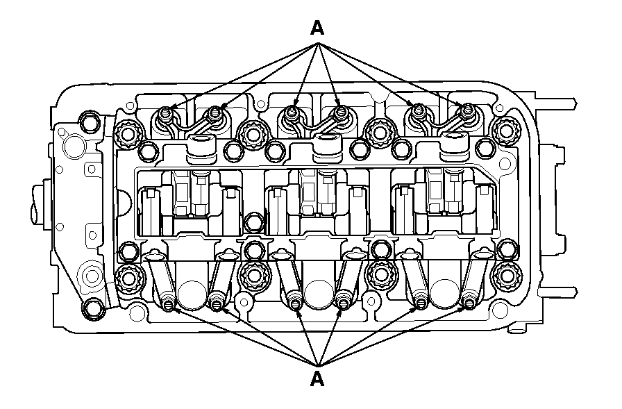1. Remove the front rocker arm assembly. See: Cylinder Head Assembly > Overhaul > Rocker Arm Assembly Removal (J35Z2 Engine)