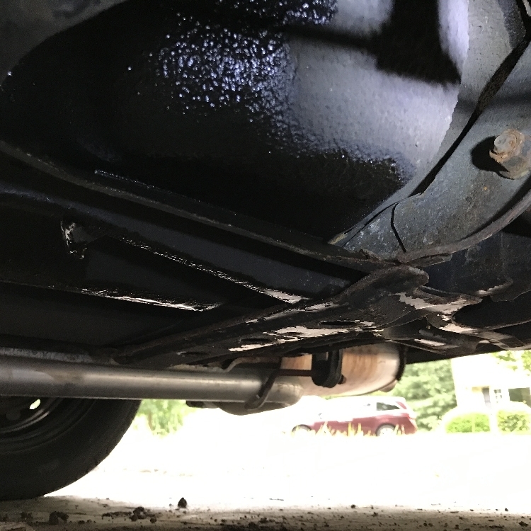 Look for the furthest point forward that you see oil underneath. Unless there is some type of cooler toward the rear, what you are seeing has been spraying there when driving at higher speeds. A leak has to be pretty significant for the oil to make it that far back.