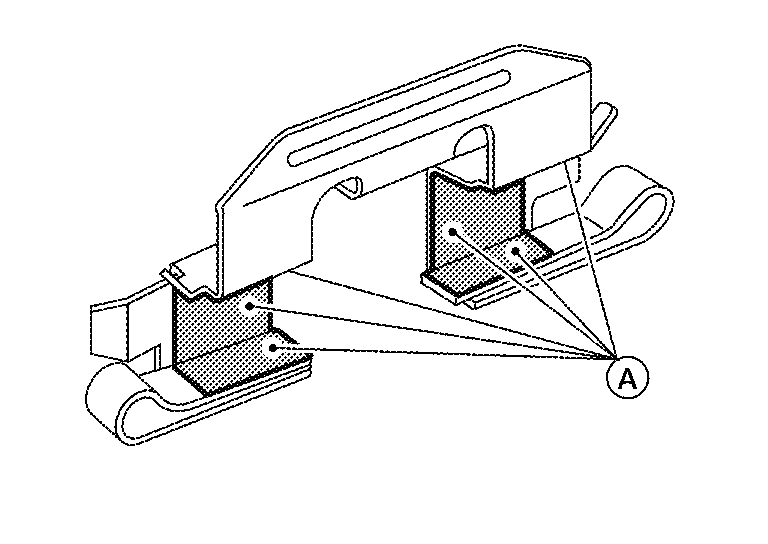 2.Apply Molykote M-7439 grease or equivalent to pad contact surfaces (A) on pad retainers. Install pad retainers and pads to the torque member.