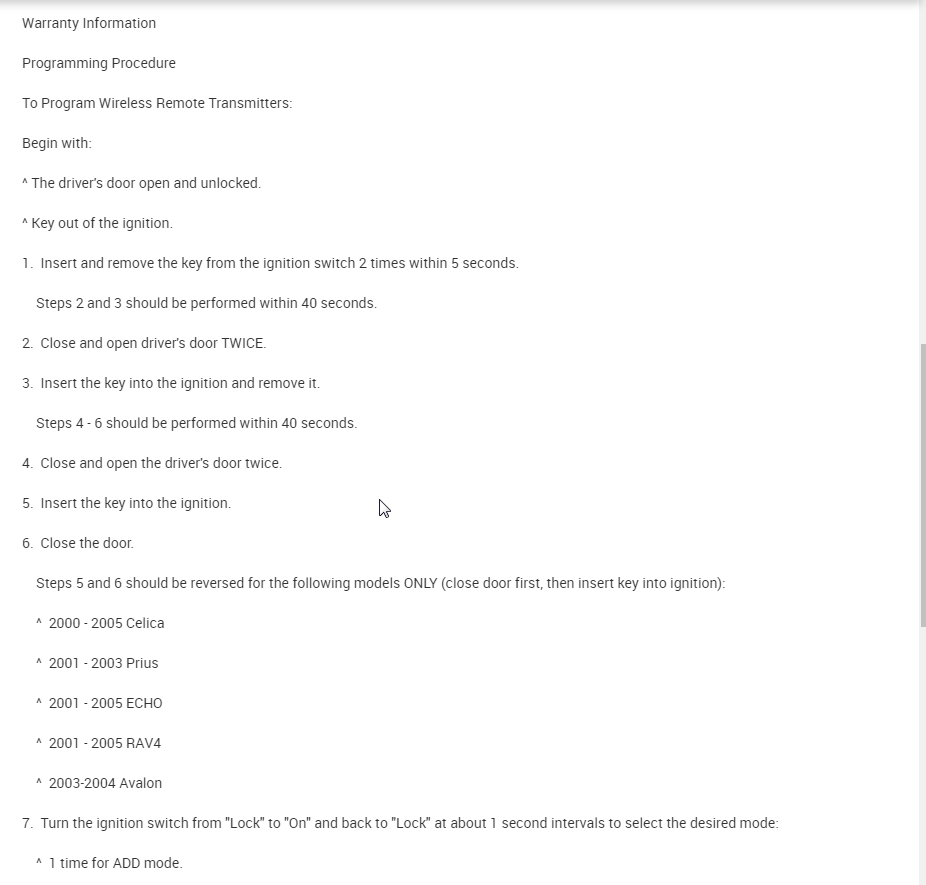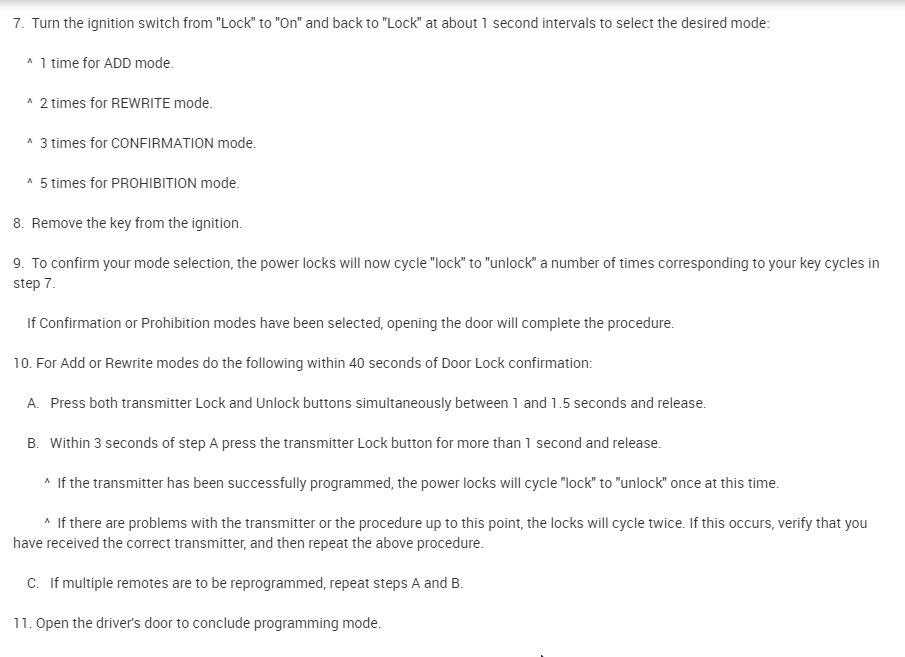The remotes are clean, air cleaned, new [tested]batteries installed. The light comes on when the button is depressed on all of them but the car doors do not open so it is not responding. It was working when I first got them. Could it be that the programing in he car was effected when a new battery was purchased? Can you give me instructions to program it to work? I do not want to do it at the dealers as they charge a great deal per remote to program it. Please help.