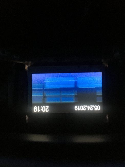 I know this is an old thread but hopefully my information can still help someone. After some extensive research online, the problem with the 2012 Focus radio not turning on (frozen blue squares) is the CD player. When you turn the radio on, it tries to initialize the CD player, when it cannot, it freezes up. My car was doing the same thing, it would show the time, temperature and frozen blue squares. So I removed the radio, just the silver box, not the monitor, I used a small torx screwdriver to remove the bottom panel of the silver box. Once the bottom panel was removed I pulled the gray ribbon cable loose from the connection inside where it attached to the CD player. Once disconnected, I re-assembled the silver box, and put it back in the dash. Turn the key on and it worked, and has worked ever since. I hope this tutorial helps someone out.