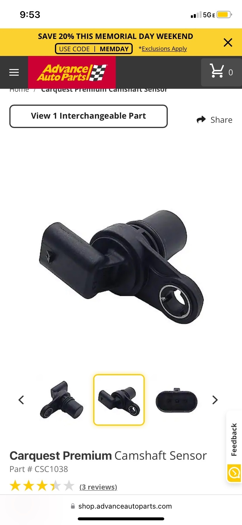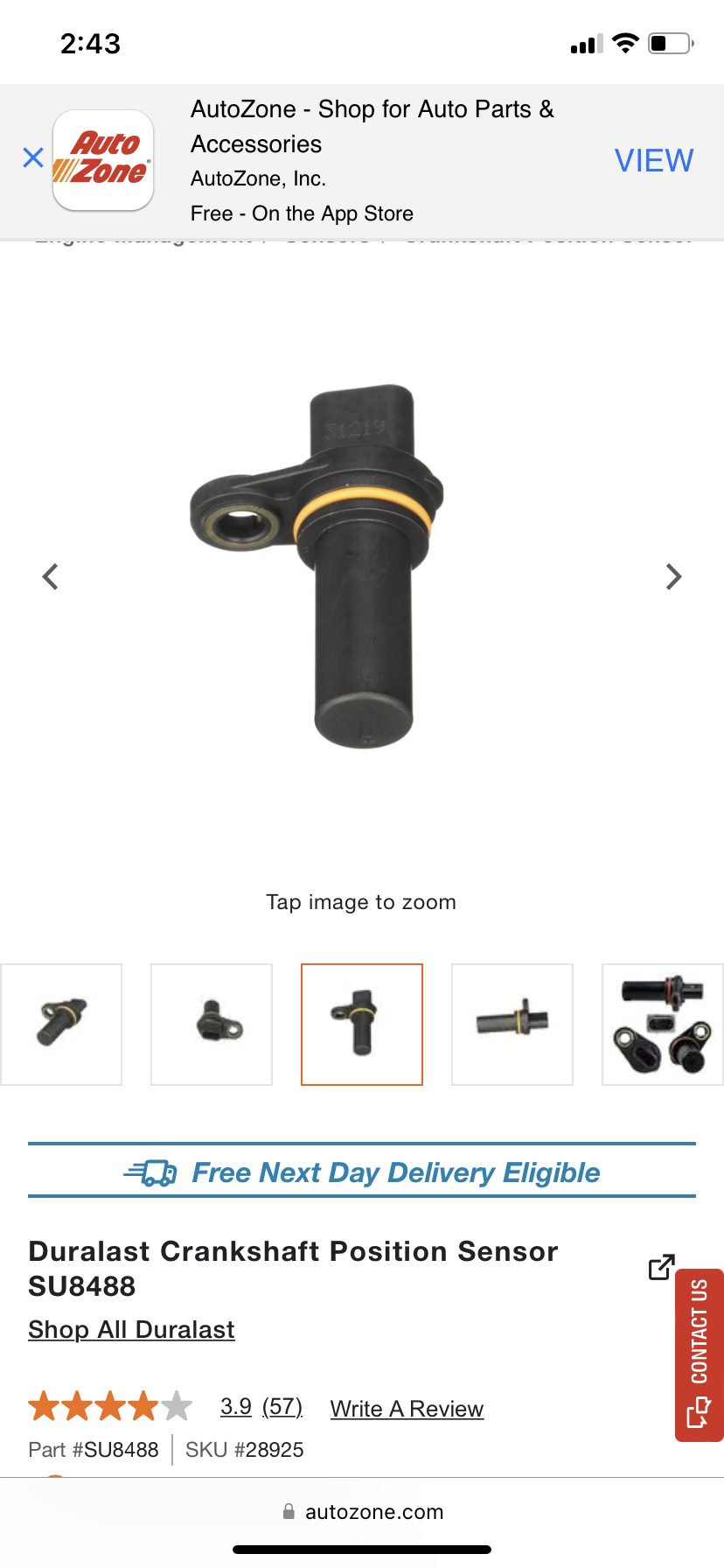 So, coming home from New Orleans my car stopped on the side of the road shut off completely and white smoke was coming from the passenger side under the hood! Looked and saw the radiator hose popped out of the cap replaced that. Noticed the belt popped, put that back on notices the alternator also broke replaced that. Now today we see the crankshaft position sponsor is coming on the reader the mechanic checks and sure enough it was burnt off. Now I'm home waiting for daylight to go change that. But last night we went to O'reily's right before closing to get the crankshaft position sensor and when we returned to the car with the piece it didn't fit like it was the wrong piece then after checking the old piece, we saw it was not the same one. The piece looks like the camshaft sensor. Could it be both? When you try and start it you can hear the belt spinning, that's all.