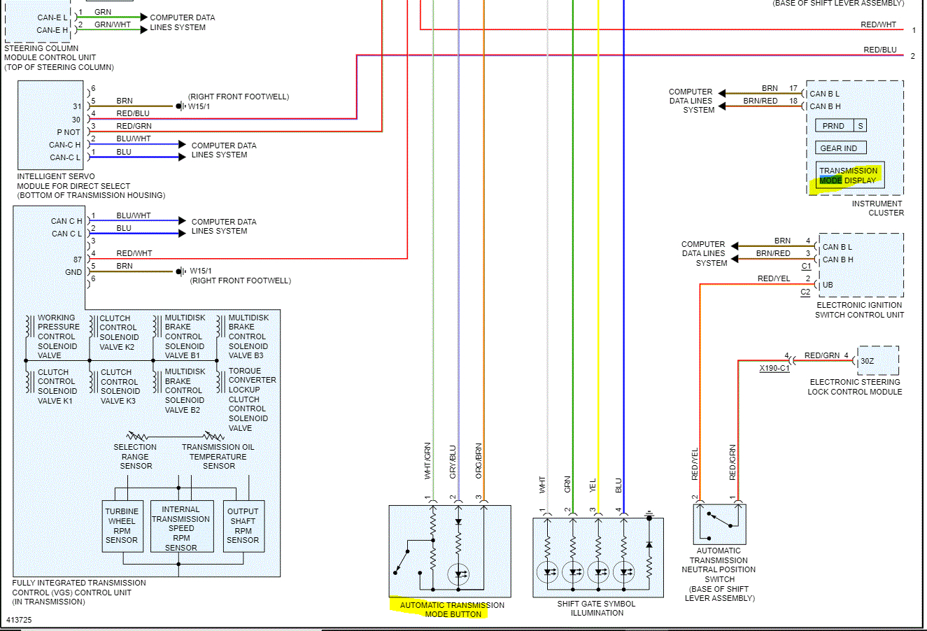 If it shows park after you shift, it could be a few things. If you look below, I attached the wiring schematic and highlighted things that can cause issues with the mode indicator. Note there is specifically an electronic selector control module.