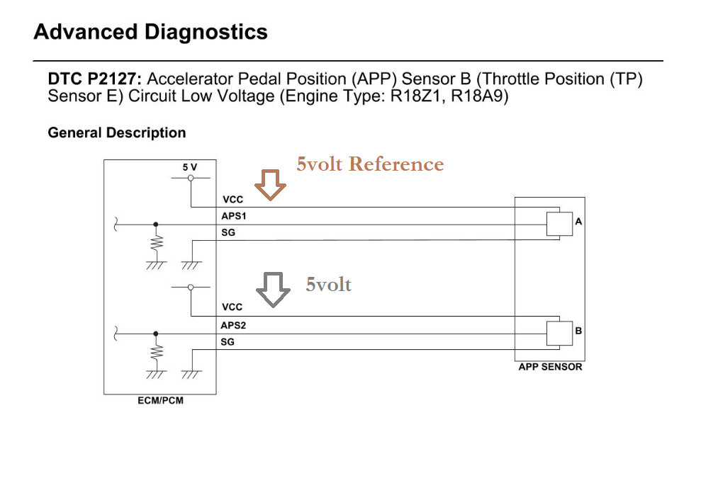 Do you have a multimeter to check for voltage at the APP sensor? It's a very easy check to do. Just Key On, engine off and we'll have you check the two 5volt References that the APP uses