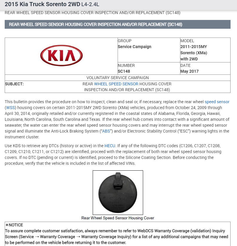 There was also a service bulletin for this vehicle due to issues with the rear ABS sensors. It was for the seal that goes over the sensor, which leaked and allowed water to enter and corrode the connectors.