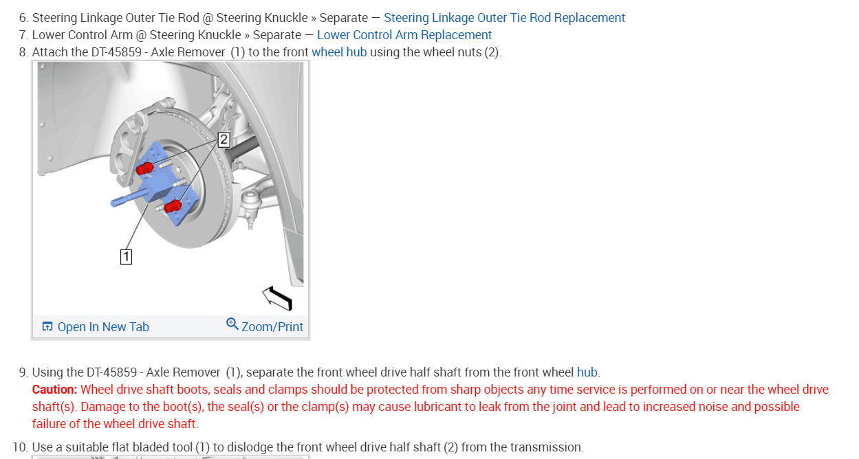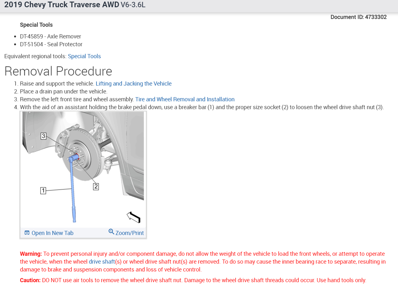You recently gave info on a late model Equinox driveshaft removal that used a tool DT-51329 and a slide hammer. My vehicle listed above needs a subframe replacement, so the driveshaft has to come out first. The tool above cannot fit at the front or rear areas of the driveshaft. I’ve loosened the center bearing support 15mm bolts, but cannot see how the shaft can come out without opening the differential or the AWD unit at front. Can you help with info?