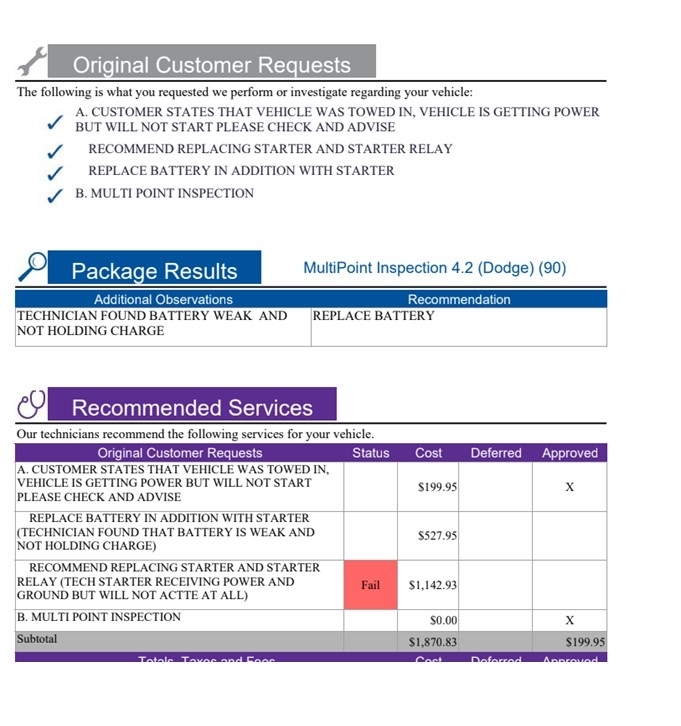 I am looking for feedback. I am wondering if the car can be towed back to AAA and ask that they replace the batter and the starter/starter relay.