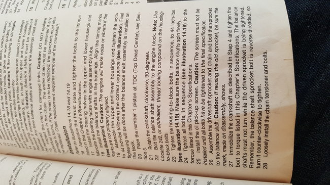 I have another question about these balance shafts. What it the proper way of timing them with the crank? I have read the book I am unsure about steps 20 and 21.