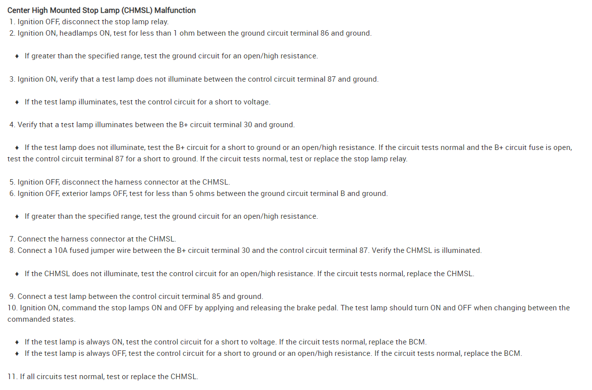 Here is the service info for testing the Center Mount 3rd brake lamp,