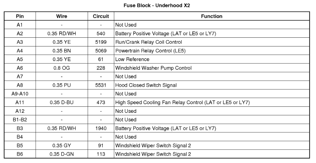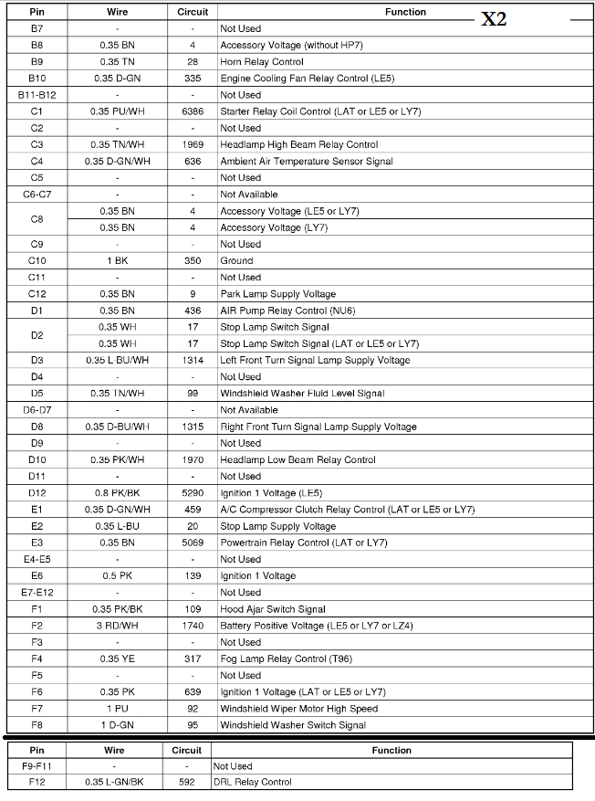 I've added the Under-hood Fuse Block and X2 connector pinout.