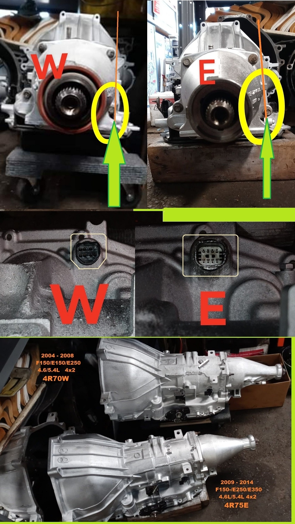 I am having a debate, and I was hoping you could give me your perspective on this. It is regarding 2004-2008 Ford F150/E150/E250 4.6/5.4L. Now Transtar and other sites all call it an E. But our shop calls it a W because of the plug, and the bolt sticking out. (I'll include pics) My boss has taught me 04-08 = W (and some early production 2009) and 09-14 are E's. The W also has a hole in the bell housing. Now, we haven't been wrong when selling any of these, but why does the internet and transend/transtar call it an E when for all intents and purposes it has W traits?