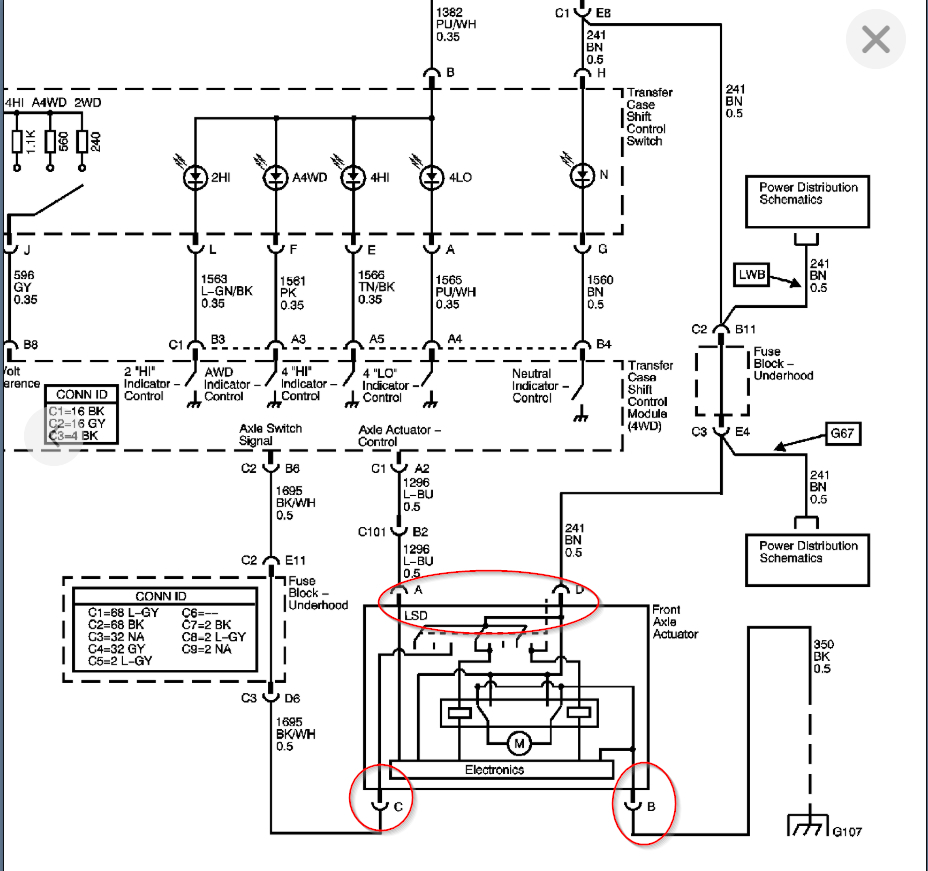 Okay. If the switch is new and the actuator is new we need to find out if you are getting power to the FAD actuator. Turn the switch to 4HI and the light should be flashing as you said. Then go to the front axle actuator and measure voltage at each of the 4 wires. You have a control wire (A) that should be sending voltage to the actuator, B+ (D), ground (B), and you signal wire (C) which tells the shift module that it has completed the shift.