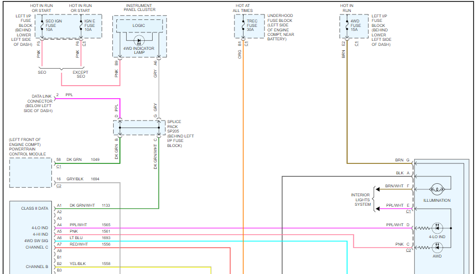 Does anybody have any idea what might be the problem? Also, does anybody have the TCCM colored wiring diagram? I'd like to see what wires are connected to what regarding the TCCM, selector switch, transfer case motor/encoder, and front axis motor.
