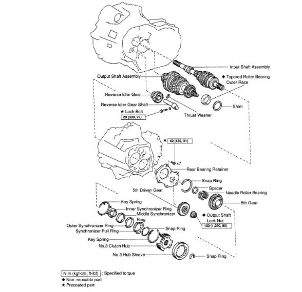I have researched this subject on my car and found that the fifth gear can be accessed by a side access panel on the manual transmission. I found a kit online to replace the fifth gear, which included the following parts: