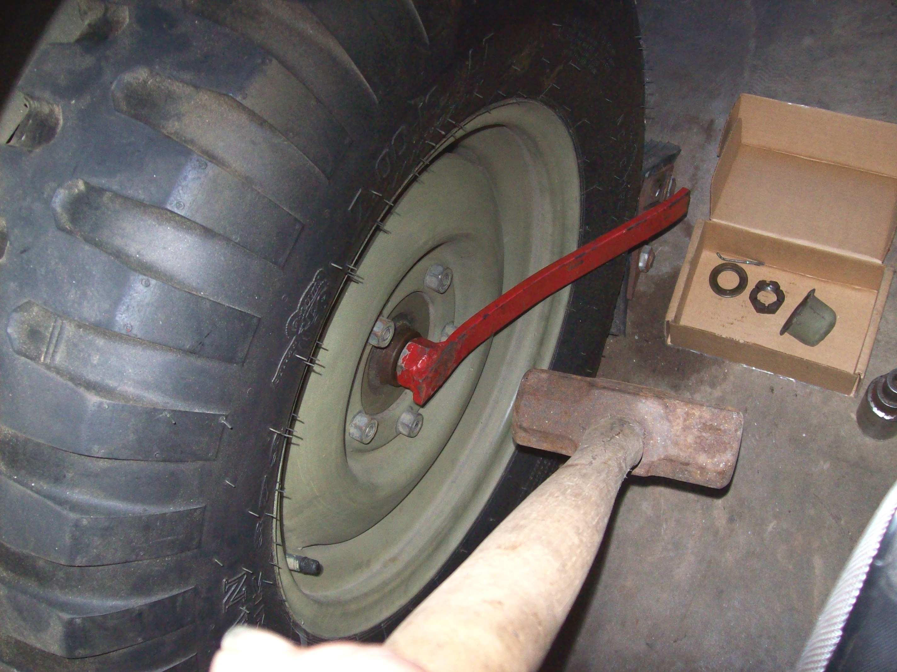 Run Mr. Whizzy tool down until the flat steel bottoms out on the end of the axle (this keeps the threads from giving and the axle from mushrooming)