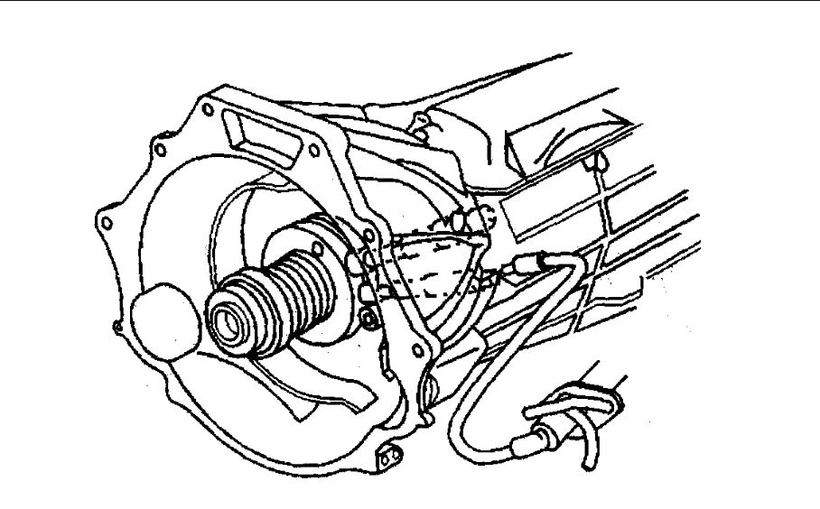 16. Using J 36221, depress the white circular release ring on the actuator cylinder hose and simultaneously pull lightly on the master cylinder hose to disconnect.