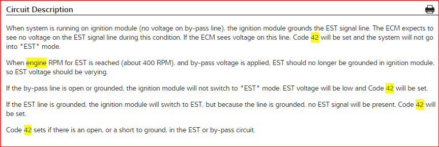Have code 34 and 42. Runs good with ESC disconnected. High idle.