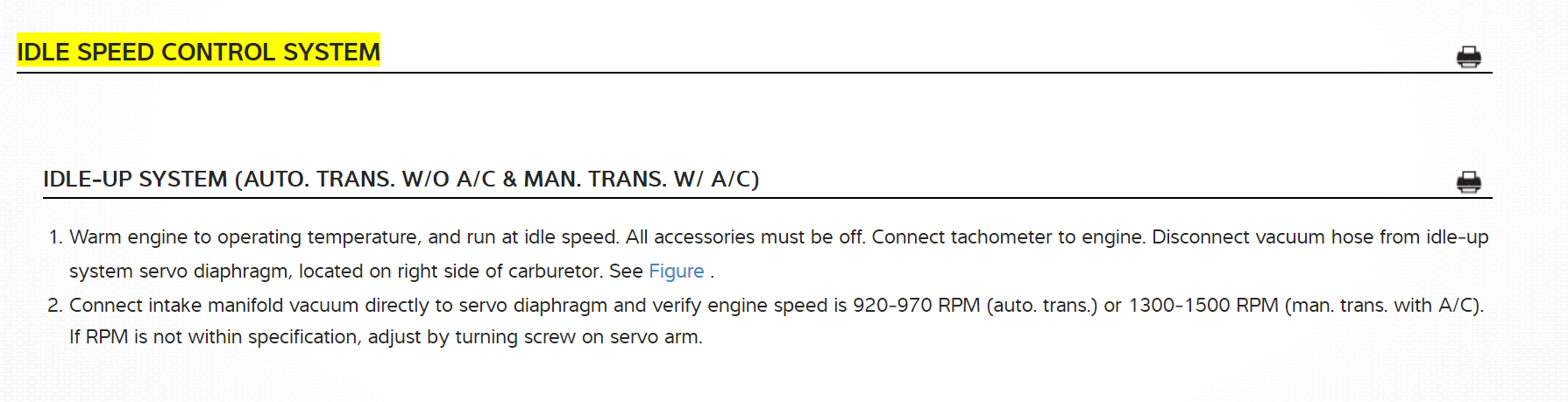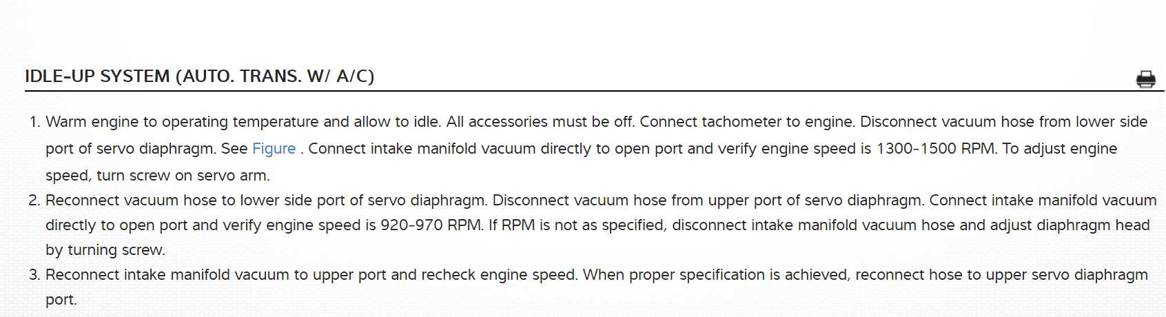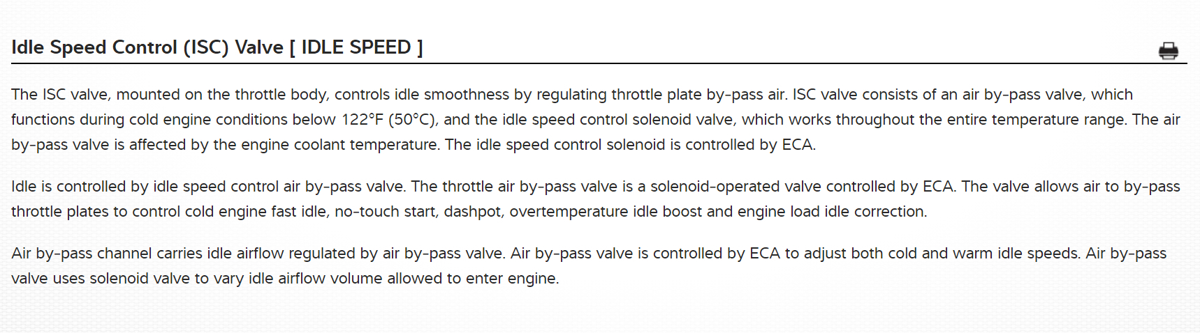 The other strange thing is that while it is idling at the high speed and regular engine temperature you can disconnect (all at the same time) the throttle sensor, the solenoid that coolant runs in and out of by the throttle sensor, idle switch/sensor, water thermosensor, temperature sensor, intake air thermosensor, oxygen sensor, a give it gas and the engine keeps running. The only thing that seems to affect it is when you unplug the idle switch the RPM's will go up a little bit. When you plug it back in it drops back down a bit. But from my understanding if you unplug the throttle sensor as soon as the idle switch is released something should happen because the computer then does not know how much gas to give the engine with the throttle sensor disconnected.