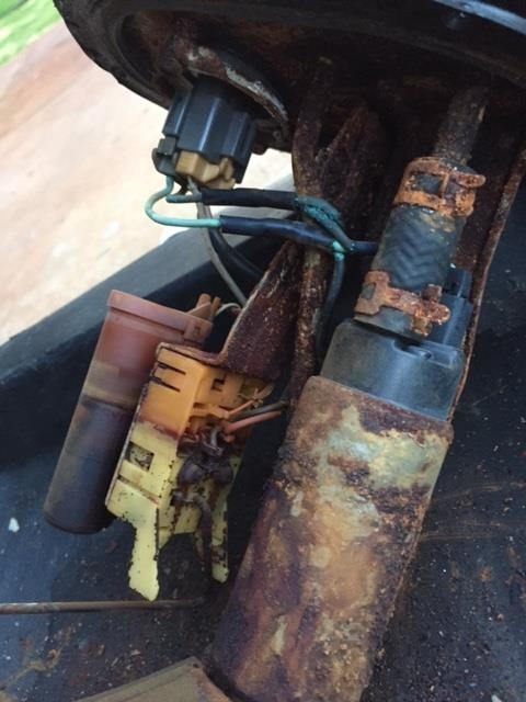Fuel gauge is stuck below empty even after I put five gallons of fresh gasoline in tank. Car sat for awhile and I bought it at an auction and I am in the process of trying to start it. Car cranks and will not start. So I noticed that gas gauge was pegged below empty. I put five gallons of fuel in tank and gauge did not move. Ran out of time to try start again. I figured I would troubleshoot the gauge first. I know access is under rear seat cushion. I just want to know where to start and if anyone has a diagram of the fuel gauge and fuel pump to get me started? What fuse should I look at?