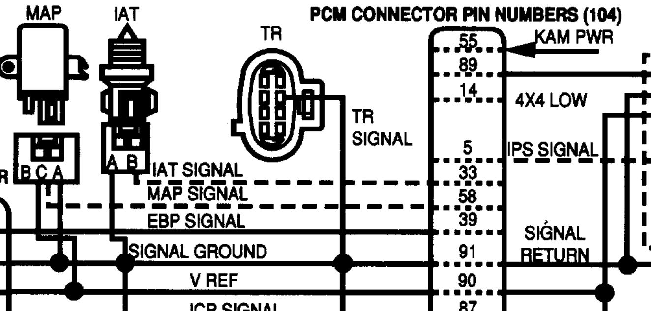 If it is less, than 5 volts, disconnect the PCM connector, then change to the Ohms setting on your meter, and measure the resistance between that same pin (B) and ground. (It should be higher that 10K (10,000 ohms) The higher the better. If the resistance is good proceed to step 3. If you have resistance lower than 10,000 Ohms then you have a short circuit to ground somewhere in the wire.