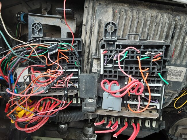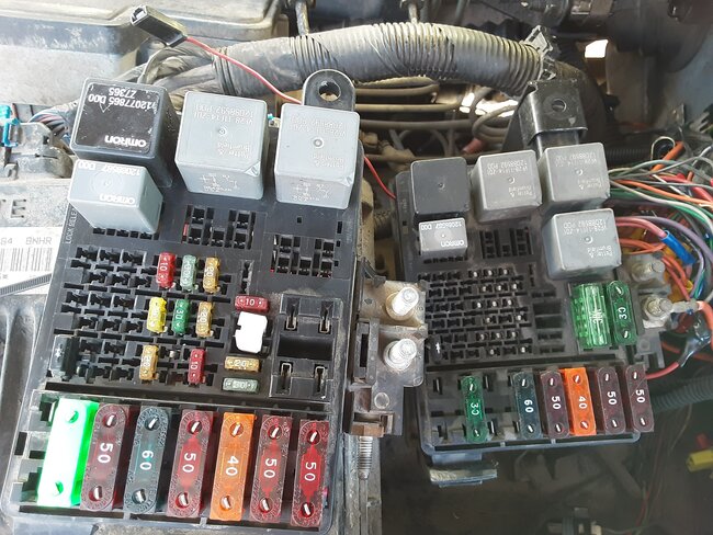 And so as for what I was asking you about in regard to the fuse panel box under the hood on the driver's side. What I was asking is another person had switched out the fuse box under hood with another one they ordered online and installed but it was slightly different. Same exact layout except for the original fuse panel box wasn't wired for the brake lamp relay switch. And I know for a fact the relay isn't used in this truck and still can't understand how its working exactly just yet. But really, I am not trying to move too much around since I have lights working properly. The fuse box with all the wires attached to it is the fuse box dude put in. Now the one with the cut wires on it is the original one that was in truck. An as you can see upon examine the fuse box connected to truck has brake lamp relay in hood area wired in the box and the original fuse box from under hood does not have the brake lamp relay wiring or anything in the slots the relay is connected in old box. I was wanting to know if I'm correct of what I'm thinking, be fine to go head n do. Since the relay is not used on original fuse box it would be same if relay wasn't used now?
