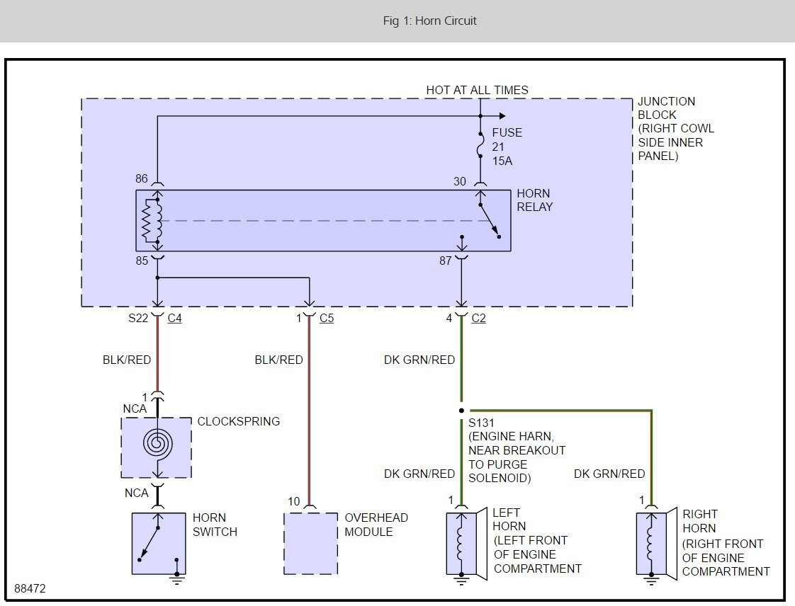 Keeps blowing 20 amp fuse on horn. Has new horn but hook up to alarm.