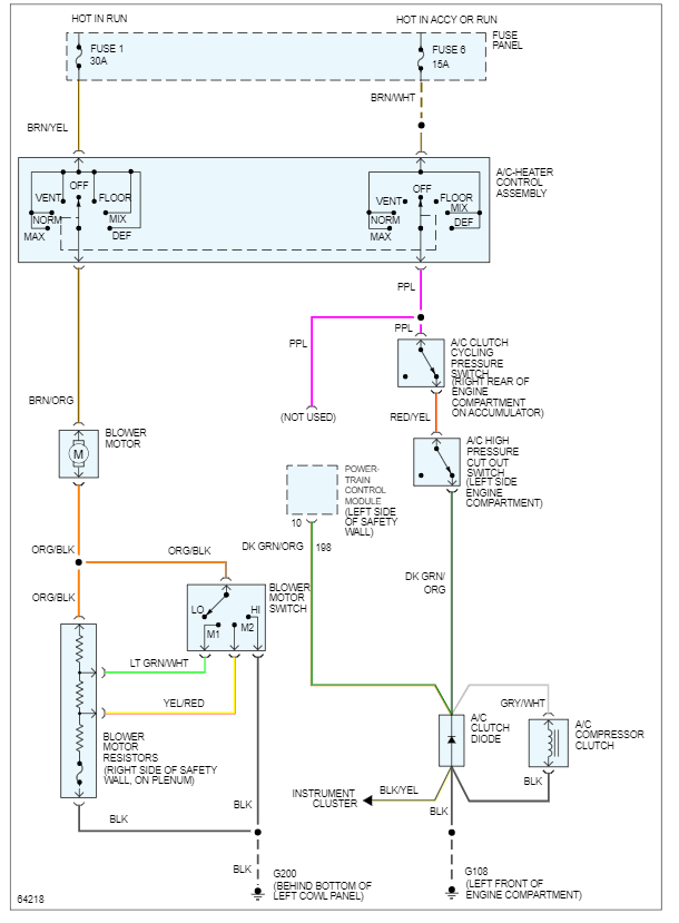 I need to wire in a trinary switch to my A/C for electric fans. I have Ford factory electrical manual, it shows a R/Y and P coming from cycling switch. I have a B/Y and P (this is factory). Is the B/Y going to be the same as the R/Y in the manual?
