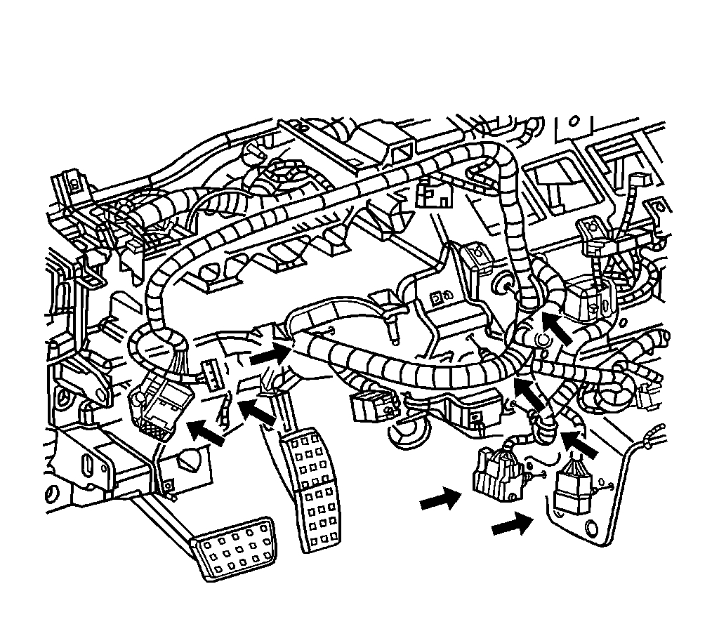 9. Connect the wire harness connector and clips on the drivers side of the vehicle.