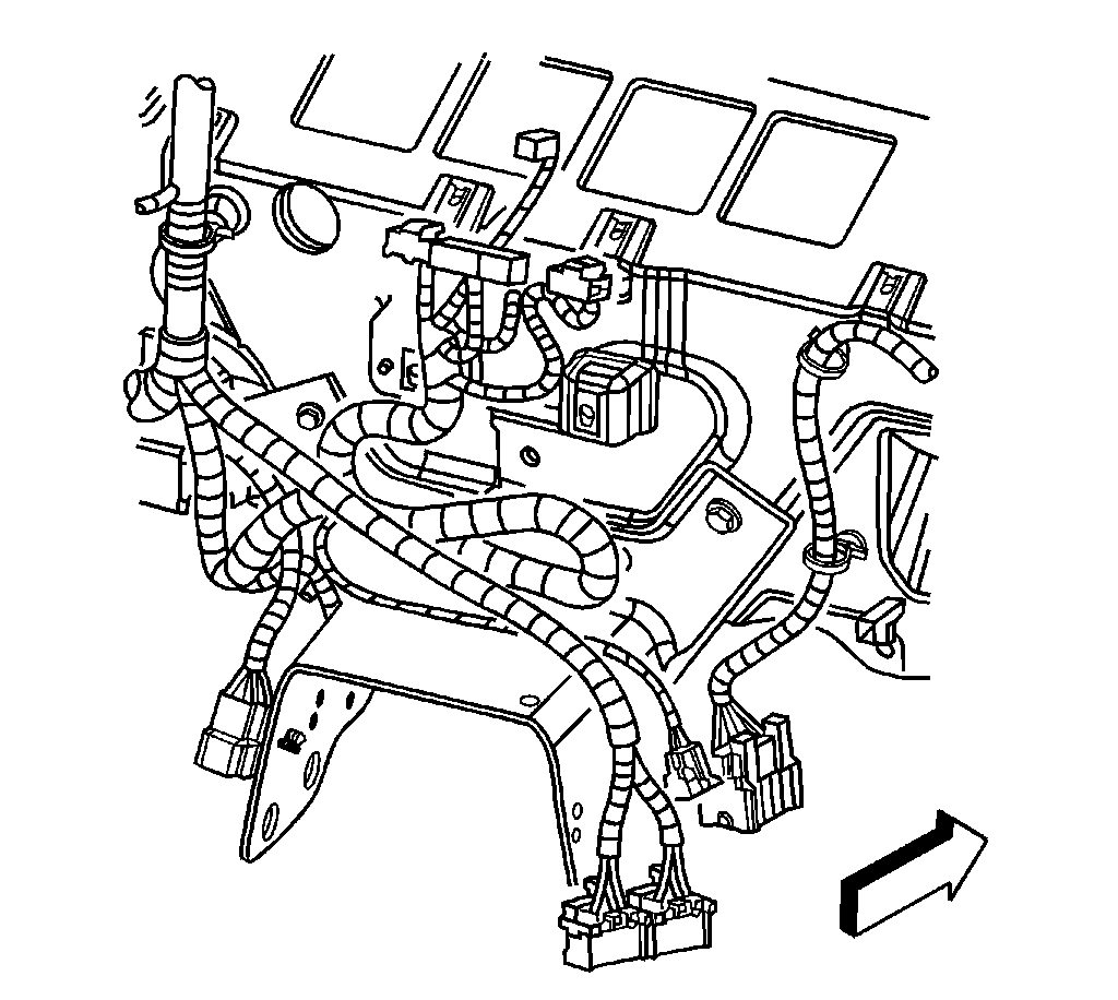 2. Remove the instrument panel retainer. Refer to Instrument Panel Retainer Replacement (See: Dashboard / Instrument Panel > Removal and Replacement).