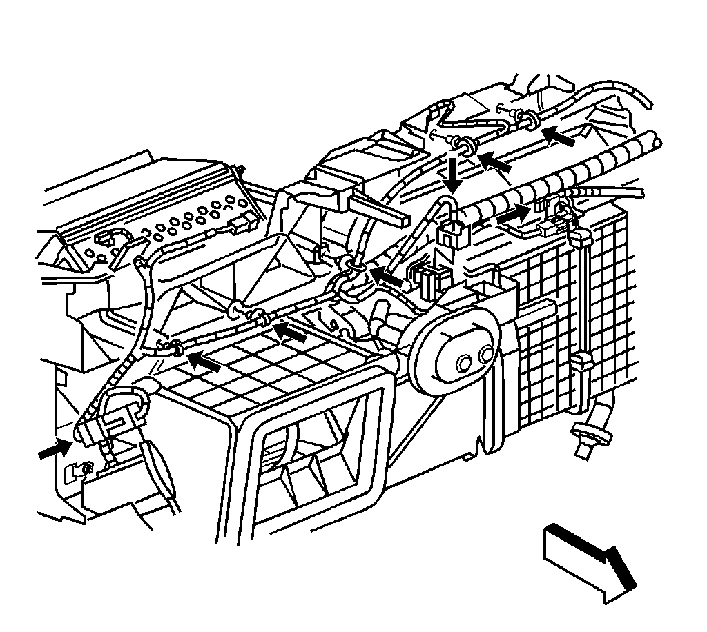 9. Remove the bolt securing the carrier to the HVAC housing.