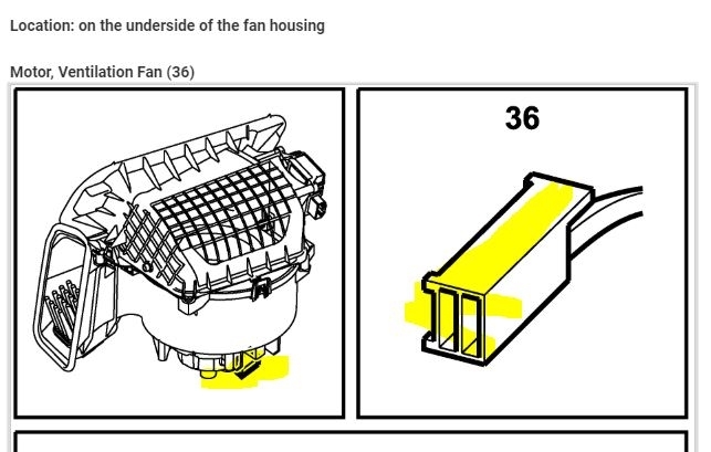 Also, these vehicles are known for having a weak connector plug at the fan motor,. Over time, they break down. I've actually seen them cause fires. So, I would really like you to check the connection to the blower motor to make sure it isn't melted or damaged in any way. I attached a picture. On the right is the connector that I'm referring to and the left is the blower motor. I highlighted approximately where the plug connects.