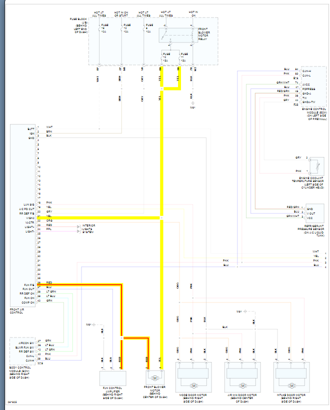 My air conditioner works, switching it between top vents, bottom, vents and defrost all work. The issue is there is no way to control how hard it blows, it is stuck on the highest position and does not turn off.