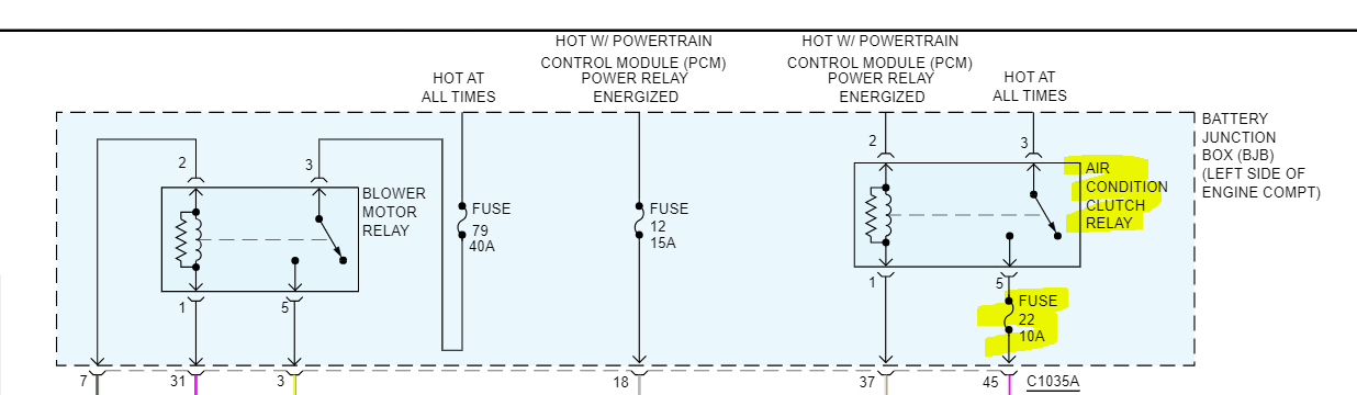 Do me a favor. First, check the fuse (fuse 22 See pic 2 below). When you check it, make sure there is power to and from it. For there to be power, the key needs to be on and the A/C requested on.