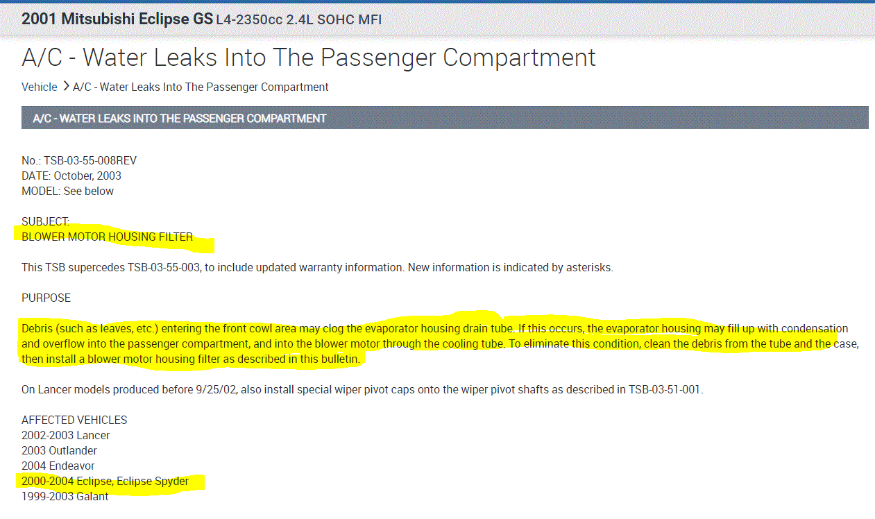 2001 Mitsubishi Eclipse GS L4-2350cc 2.4L SOHC MFI